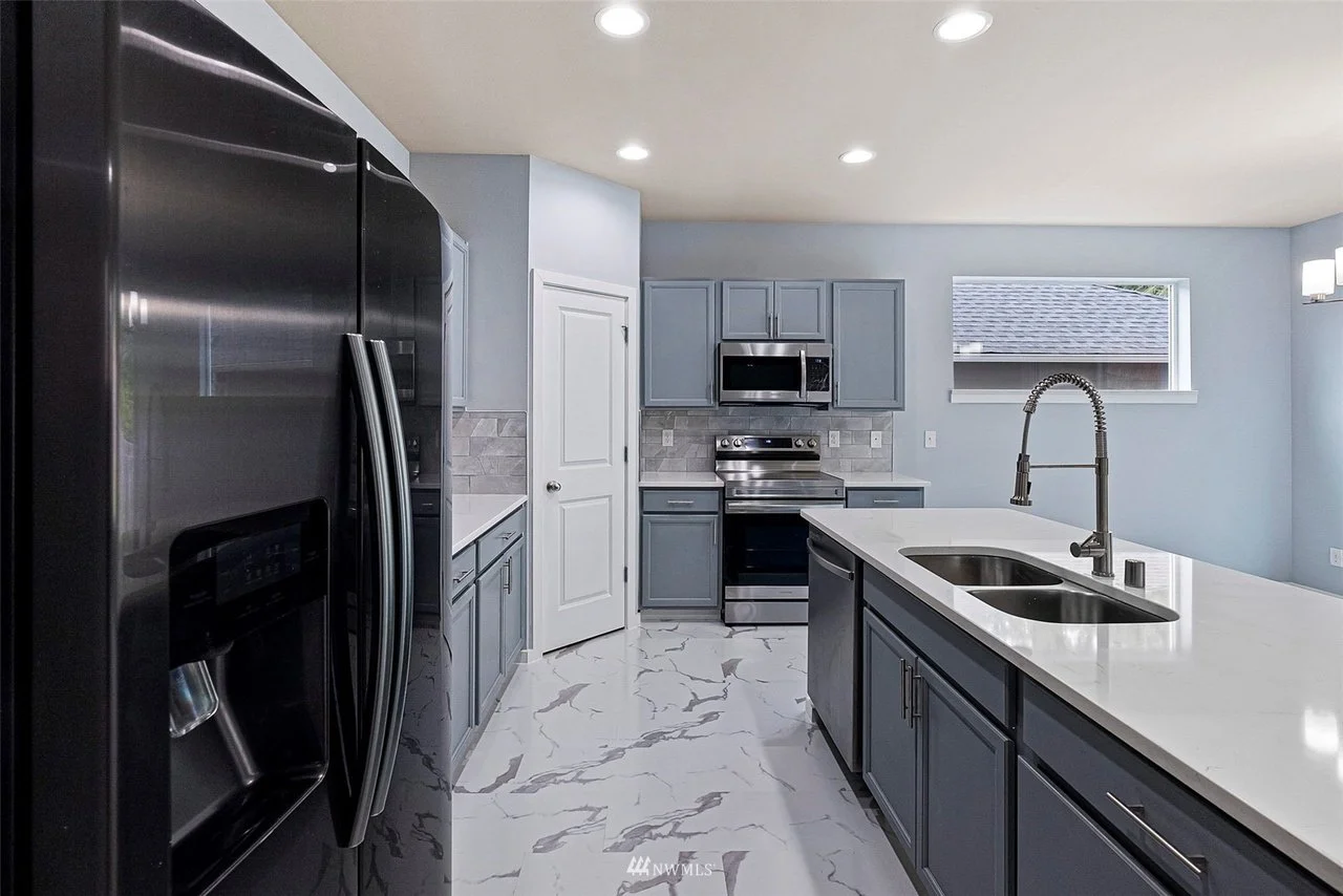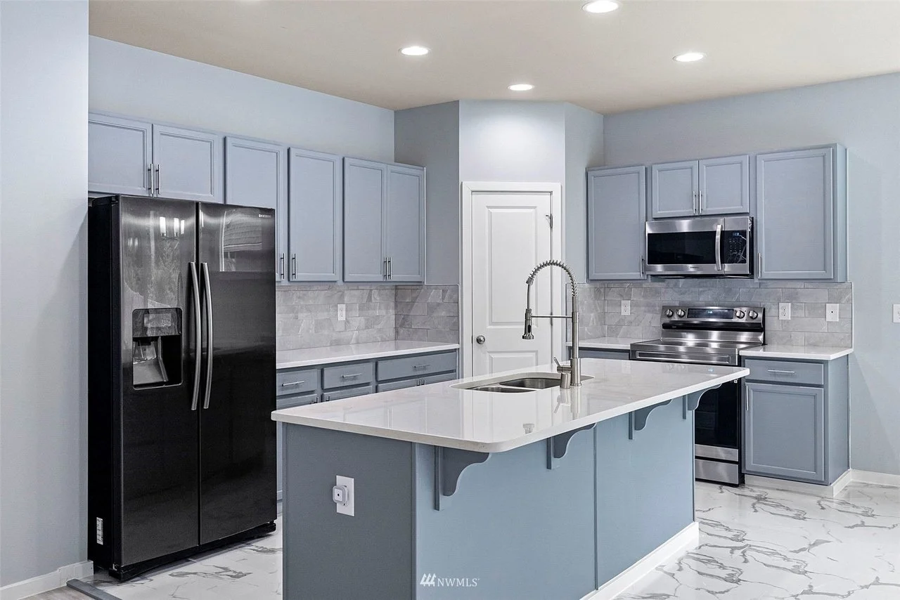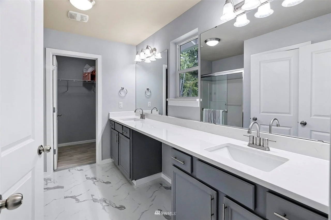 This stunning project in Bremerton, WA, perfectly showcases the elegance and versatility of quartz. Our team meticulously designed and installed beautiful, cohesive surfaces throughout the home, from the kitchen to the bathroom. The centerpiece of the kitchen is a flawless quartz island, complemented by matching countertops. We also seamlessly installed custom quartz vanity tops in the bathrooms and added durable, stylish window sills to tie the entire home together with a clean, modern finish. This project is a true testament to the quality and craftsmanship we deliver.